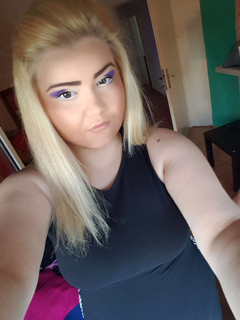 | Haare: | blond, schulterlang, glatt |