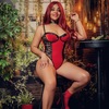 Haare:rot, rückenlang, glatt