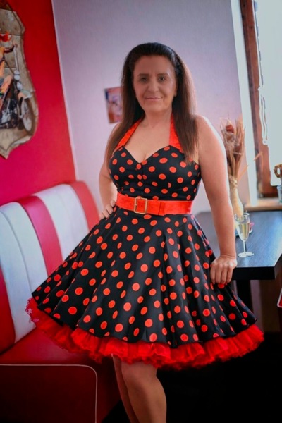 Ich bin Erika, ein 50 Jahre junges Model mit mittelelangen, brünetten Haaren.